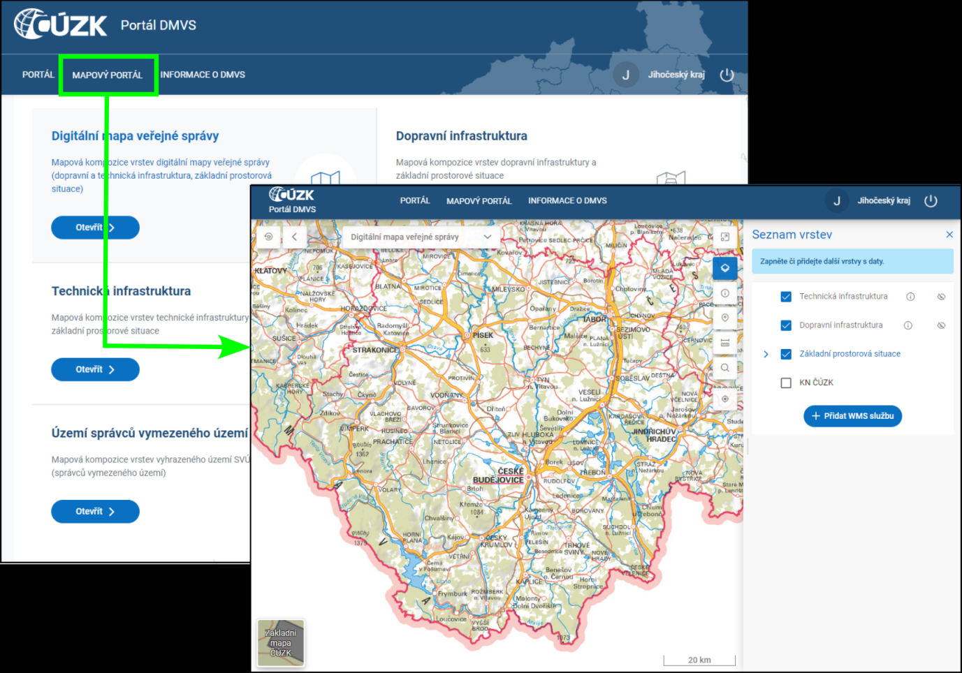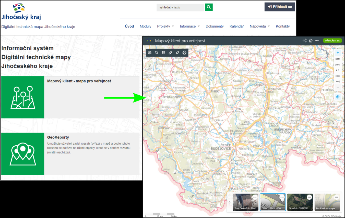 7. Konkrétní polohu sítí dopravní a technické infrastruktury lze ověřit i prostřednictvím prohlížecích služeb DTM daného kraje např. v ukázce DTM Jihočeského kraje, které jsou zcela volně dostupné v mapě pro veřejnost.