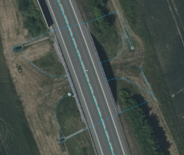 Řešení Obvodu mostu, kde je součástí mostovka s přesahem tak, aby byly zahrnuty i římsy (mostní vybavení) mimo mostovku.