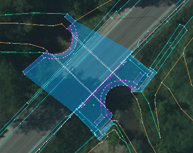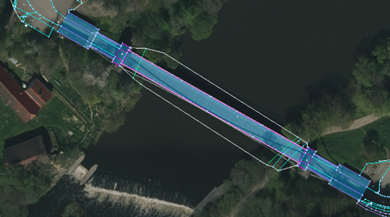 Obrázek 71: Obvod mostu složitější konstrukce – ZPS + ortofoto – modrá plocha