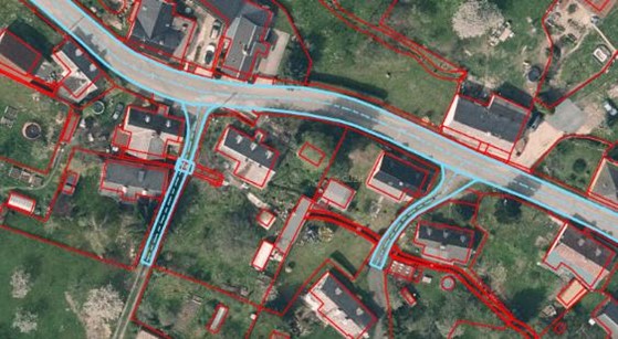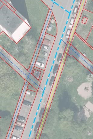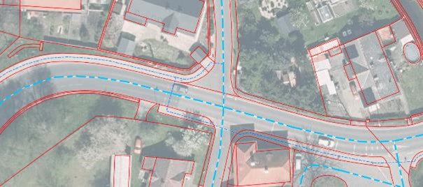 Úseky pěší a cyklistické sítě se pořizují vždy v případě, že jsou stavebně odděleny od silniční komunikace. Je možné pořizovat i stavebně neoddělené chodníky, pokud to bude vyžadováno pro specifické účely (např. údržba, přístupnost pěších komunikací, intermodální plánování apod.) – viz Obrázek 84.