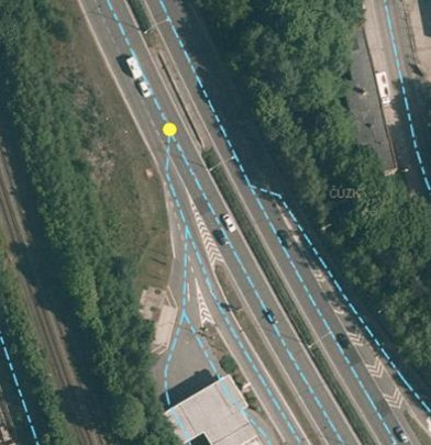 Obrázek 88: Vymezení Dopravního uzlu v přímém úseku Obrázek 88: Vymezení Dopravního uzlu v přímém úseku