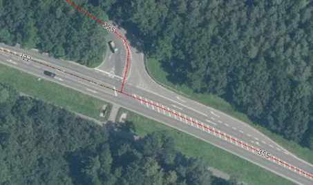 OP PK dálnic se řeší vytvořením osy jízdního pásu nad rámec objektů obsažených v DTM. Od osy jízdního pásu se následně odvozuje OP PK dálnice.