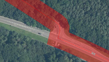 Pokud by při vymezení OP PK vznikly malé plošky uprostřed „motýlků“ sjezdových větví mimoúrovňového křížení, tak se plochy mimo OP PK zahrnou do OP PK dálnice – viz Obrázek 97.