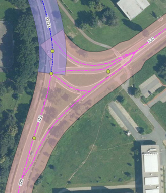 Při křížení PK se nejdříve vymezí OP pro komunikaci hlavní (II/355) a následně pro komunikaci vedlejší (II/322) - viz Obrázek 92.