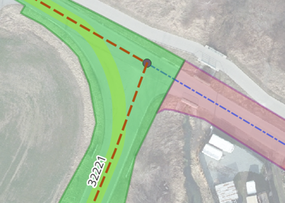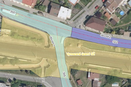 Obr. č. 2: Obvod PK bez rozdělení v místě přejezdu (vznikne duplicita ploch) - původní řešení