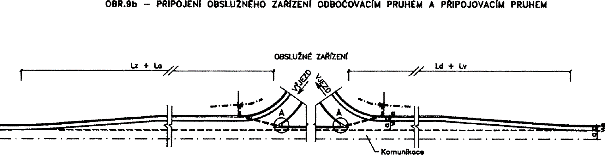 OBR. 10: PŘIPOJENÍ OBSLUŽNÉHO ZAŘÍZENÍ ODBOČOVACÍM PRUHEM A PŘIPOJOVACÍM PRUHEM