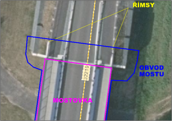 Poznámka: Do obvodu mostu se nepočítá odstranitelné vybavení typu reklamní cedule, protidotyková ochrana trakčního vedení apod., které vyčnívá za logický tvar obvodu mostu.