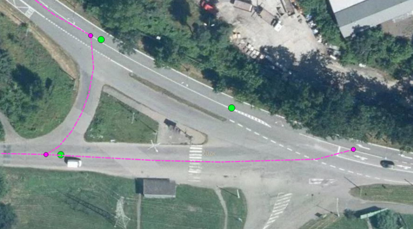 Obr. č. 2: Chybějící úsek před křižovatkou – dokončení osy na podkladě ULS
