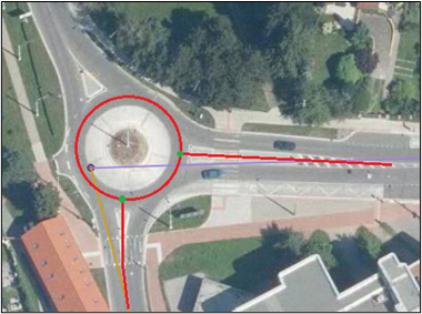 Obr. č. 10: Okružní křižovatka, doplněna osa na kružnici